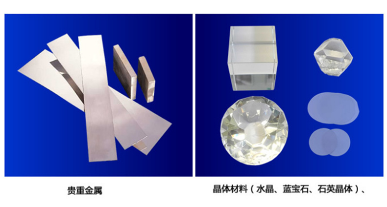 可用于切割玉石、玻璃、陶瓷、石墨、瑪瑙、紅寶石、藍寶石、亞克力、單晶硅、多晶硅、碳化硅、耐火材料、巖樣、復合材料、環(huán)氧板、鐵氧體等不導電材料的切片開方及直體異形的加工切割